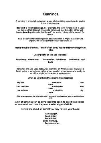 Activity For Beowulf Kennings By Christine S Modest English Tpt